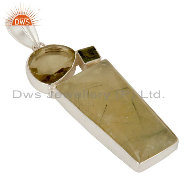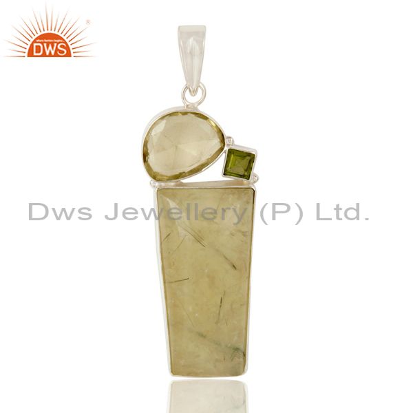 Prehnite, Peridot And Lemon Topaz Sterling Silver Artisan Pendant