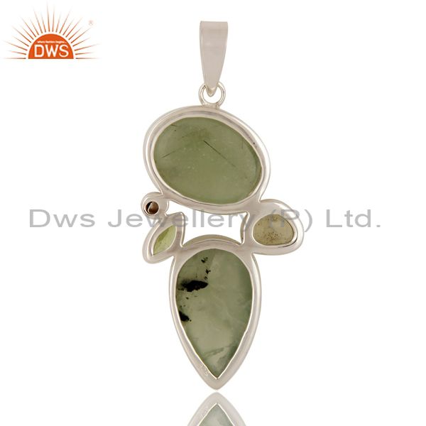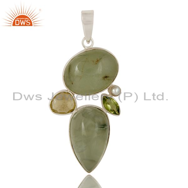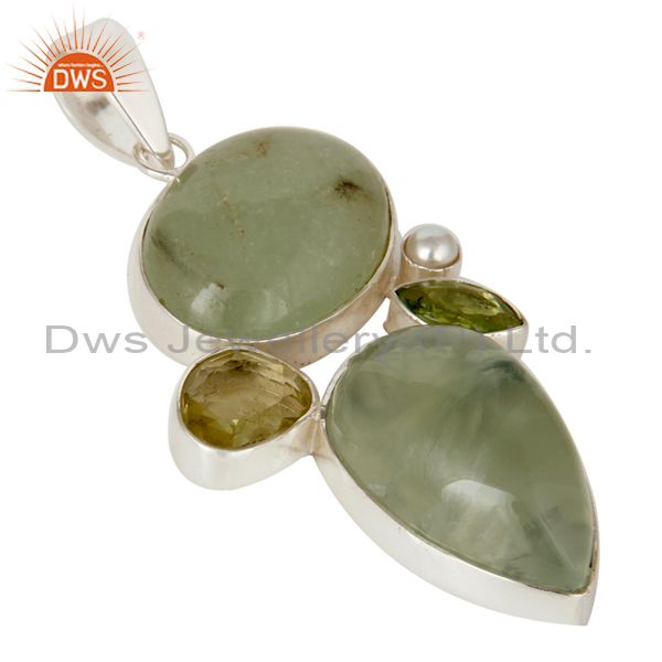 Prehnite, Peridot, Lemon Topaz And Pearl Sterling Silver Artisan Pendant