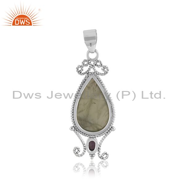 Prehnite Prehnite Gemstone Silver Oxidized Pendant Designer Jewelry