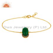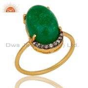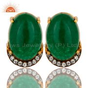 Prong Set Green Aventurine & CZ 18K Gold Plated Sterling Silver Pendant Necklace