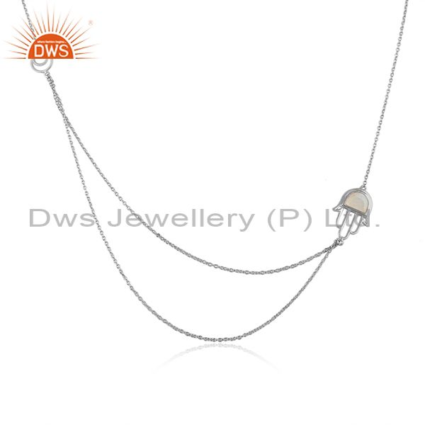 Rainbow Moon Stone Hamsa Pendant Set Double Chain Necklace