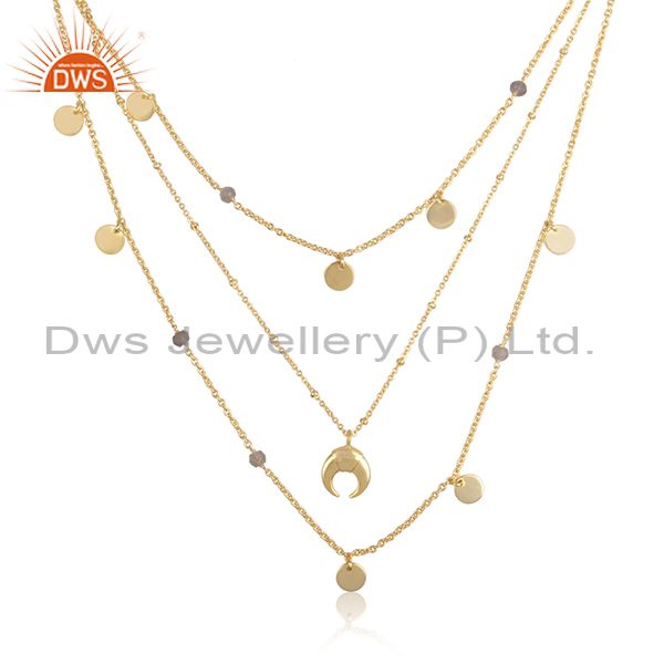 Rainbow Moon Stone Coin And Moon Charms Brass Gold Necklace