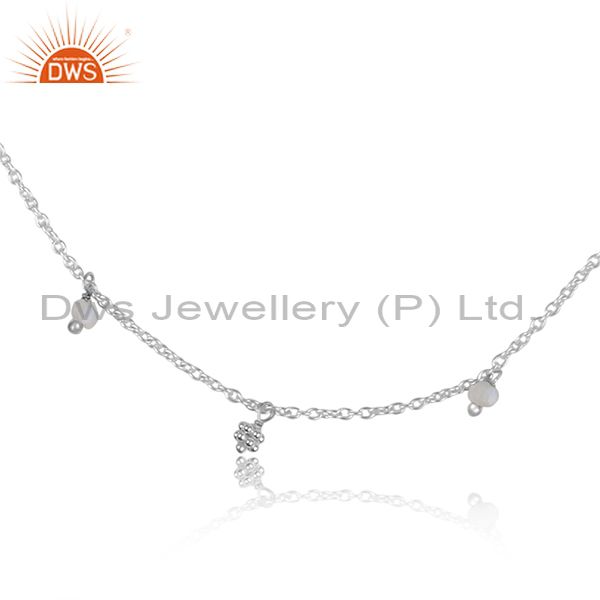 Rainbow Moon Stone Faceted Sterling Silver White Necklace