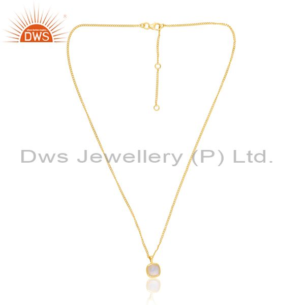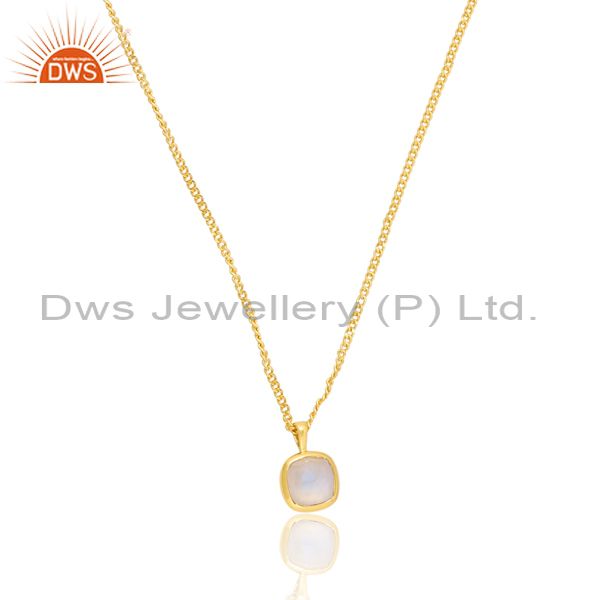 Rainbow Moon Stone Set 18K Gold Square Pendant And Necklace