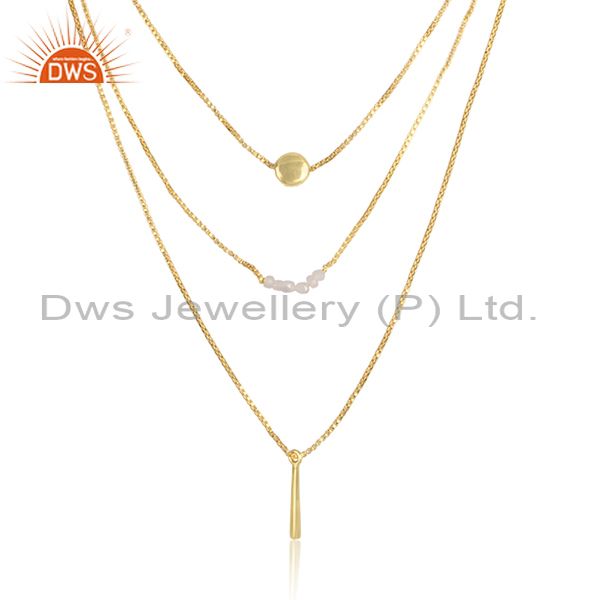 Rainbow Moon Stone Set Classic Designer Brass Gold Necklace