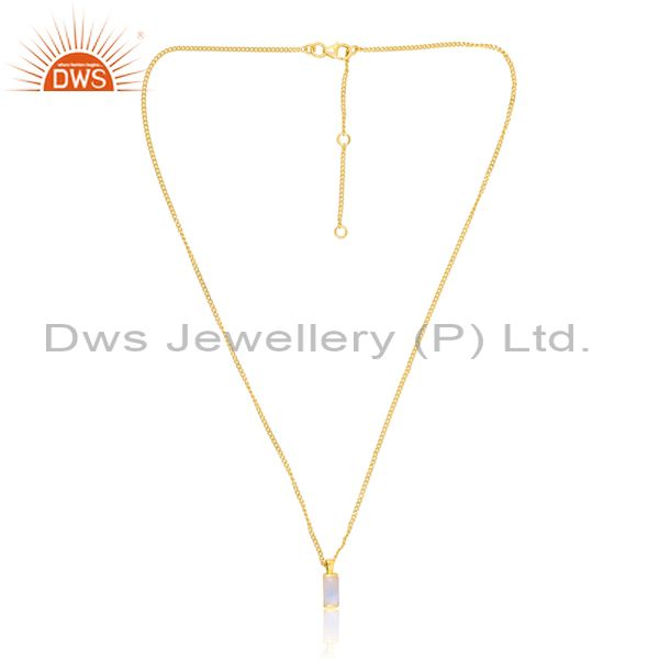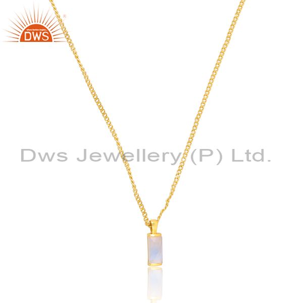 Rainbow Moon Stone Set Handmade Pendant And 18K Gold Chain