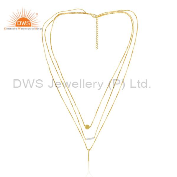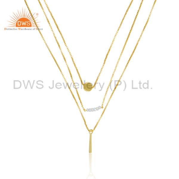 Rainbow Moon Stone Triple Chain Brass Gold Fancy Necklace