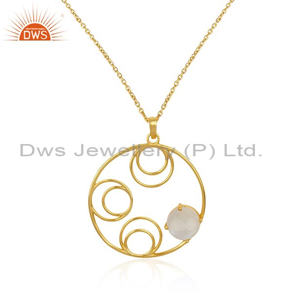 Rainbow Moonstone 925 Sterling Silver Gold Plated Designer Pendant Wholesale
