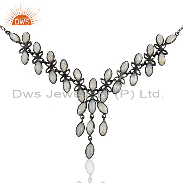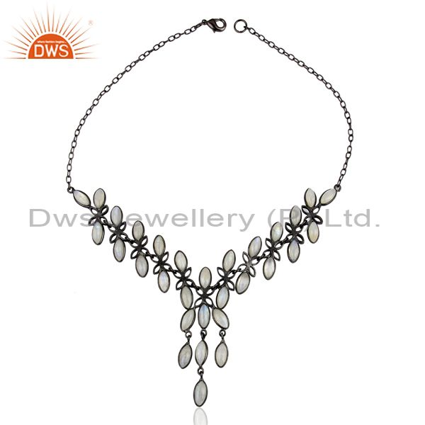 Rainbow Moonstone Black Oxidized Handmade Design Necklace Brass Jewelry