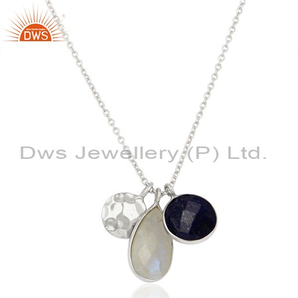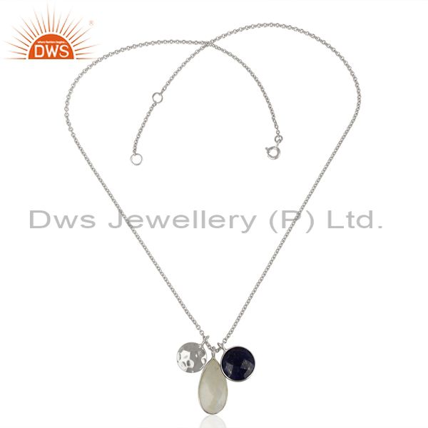 Rainbow Moonstone Multi Stone White Rhodium 925 Sterling Silver Chain Pendant