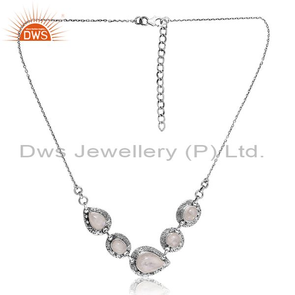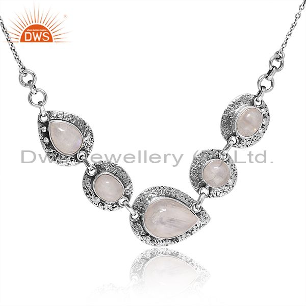 Rainbow Moonstone On Oxidized Silver Pendant & Necklace