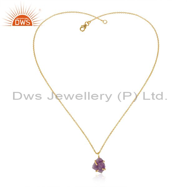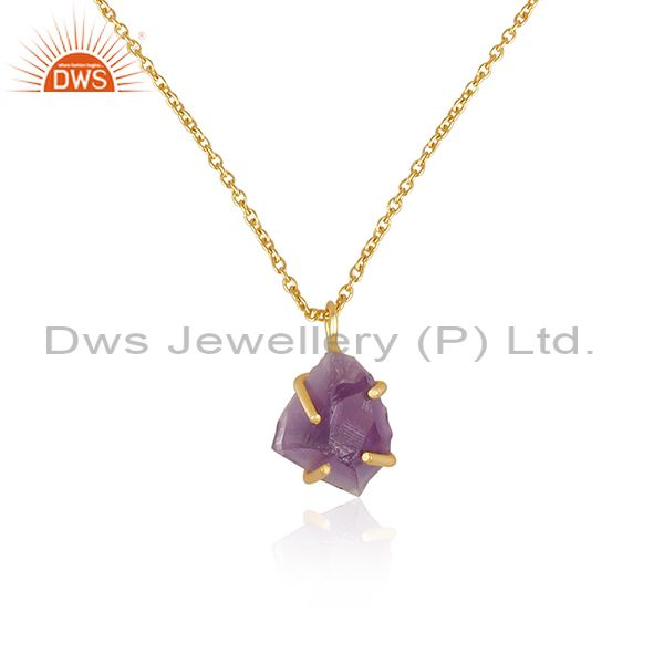 Raw Amethyst Gemstone Gold On 925 Silver Chain Pendant