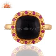 Real Ruby Gemstone 925 Sterling Silver Black Onyx Pendant 18K Gold Plated 16" C