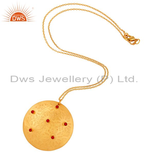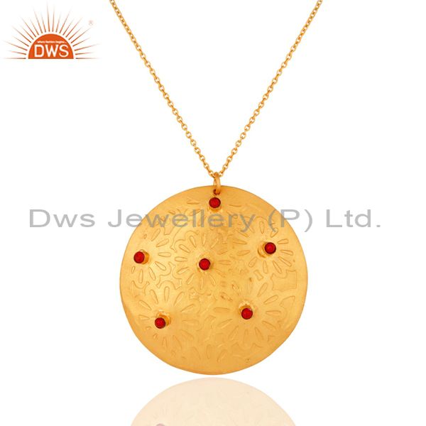 Red Coral Gemstone Gold Plated Brass Fashion Handmade Chain Pendant