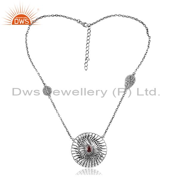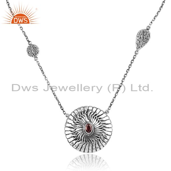 Red Garnet Set Oxidized 925 Silver Classic Pendant And Chain