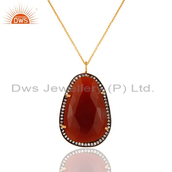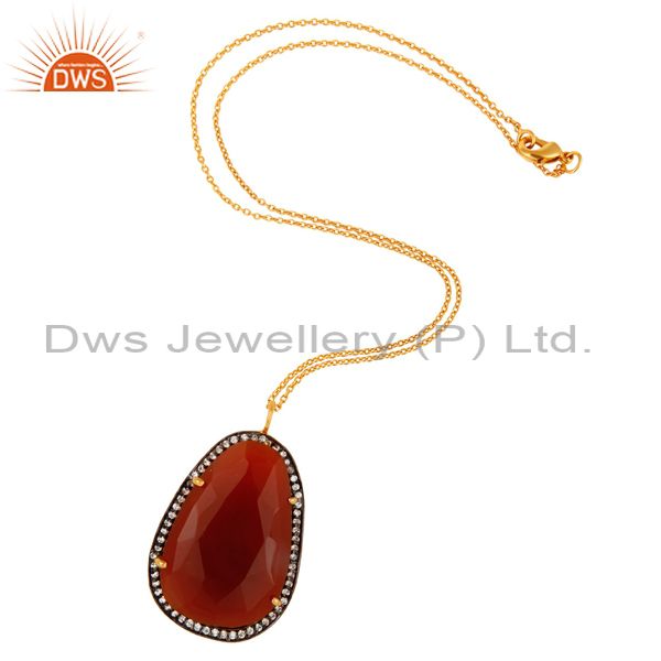Red Onyx Gemstone Pendant Necklace Made In 24K Gold Over Sterling Silver Jewelry