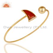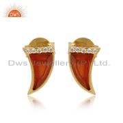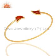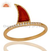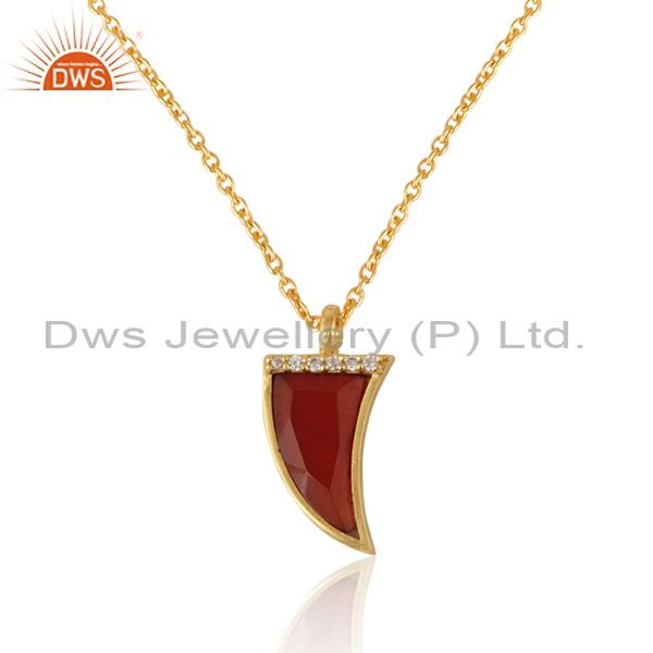 Red Onyx Horn Cz Studded 14 K Gold Plated Chain 92.5 Sterling Silver Pendent