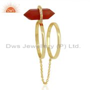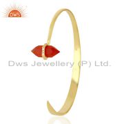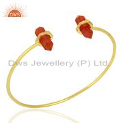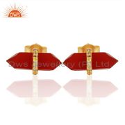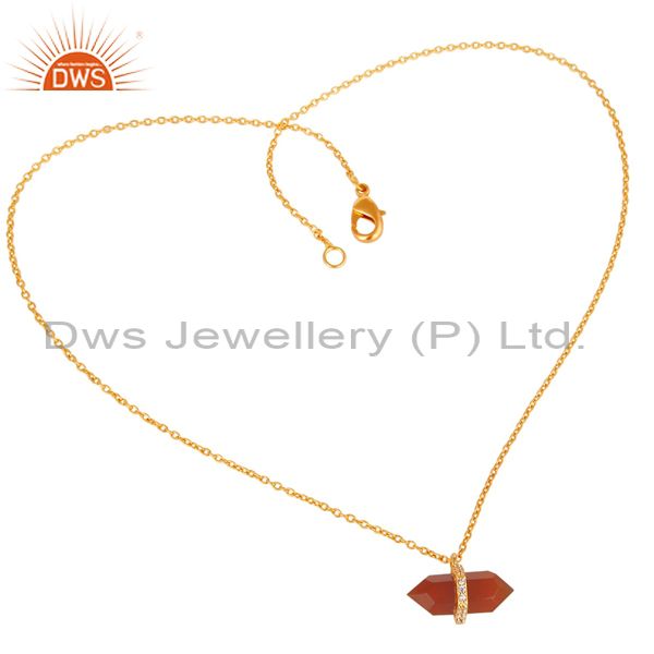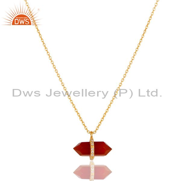 Red Onyx Terminated Pencil Cz Studded 14K Gold Plated Silver Pendent