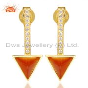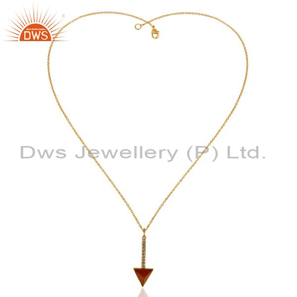 Red Onyx Triangle Cut 14 K Gold Plated 92.5 Sterling Silver Chain Pendent