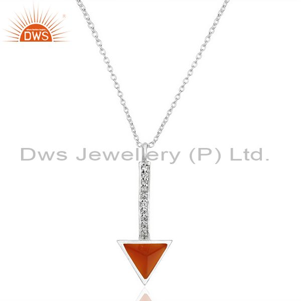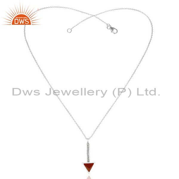 Red Onyx Triangle Cut 92.5 Sterling Silver Chain Pendent,Long Pendent