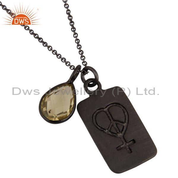 Rhodium Plated Sterling Silver Natural Lemon Topaz Bezel Set Pendant With Chain
