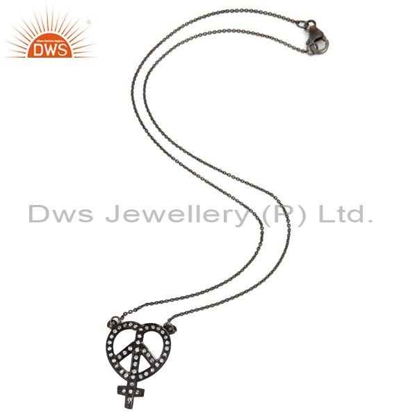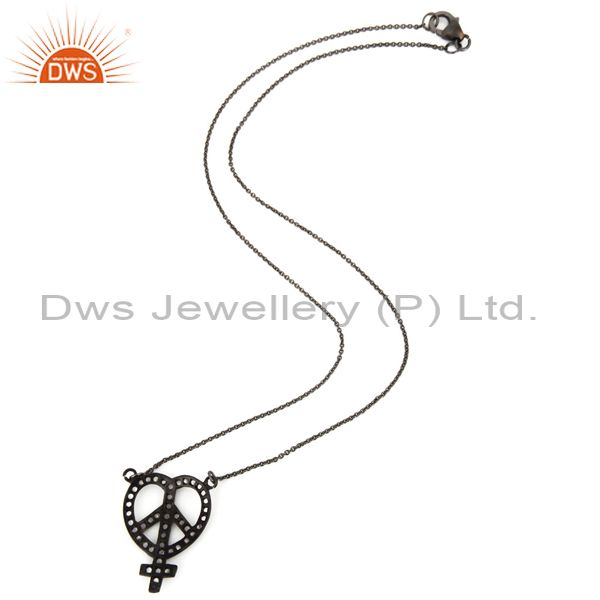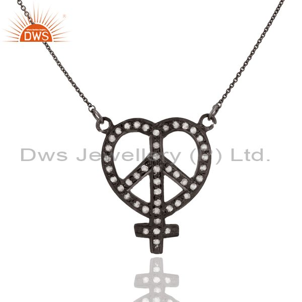Rhodium Plated Sterling Silver White Topaz Heart, Ankh & Peace Sign Necklace