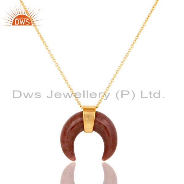 Rhodonite Crescent Moon 925 Sterling Silver Pendant And Necklace Jewelry