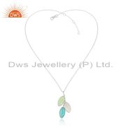 Rose Aqua And Blue Chalcedony Gemstone Fine Silver Chain Pendant