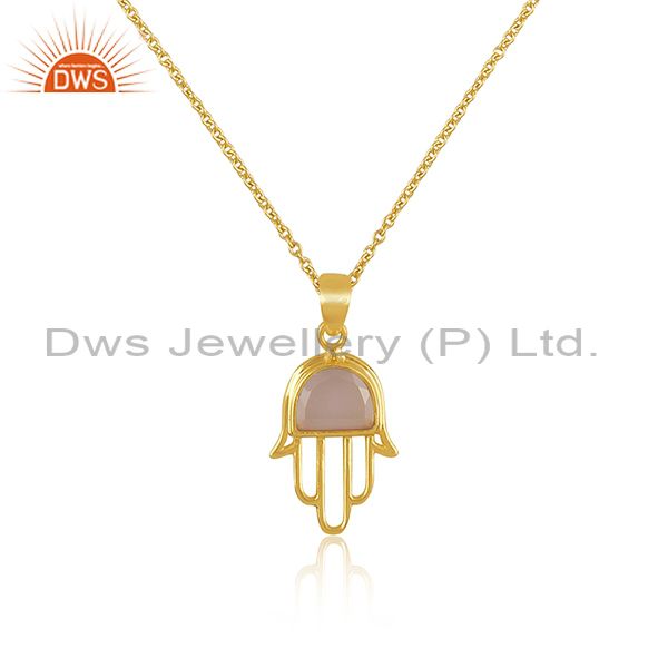 Rose Chalcedony Coin Gold On Silver Hamsa Pendant And Chain