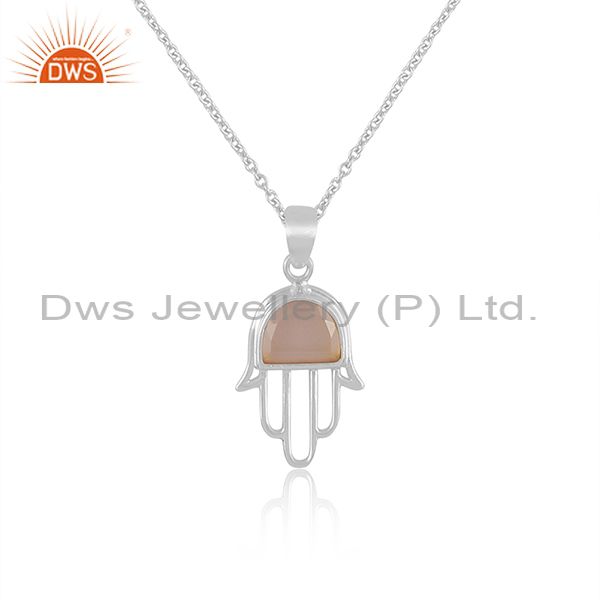 Rose Chalcedony Coin Set Fine Silver Hamsa Pendant And Chain