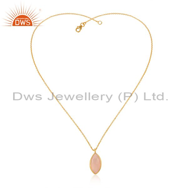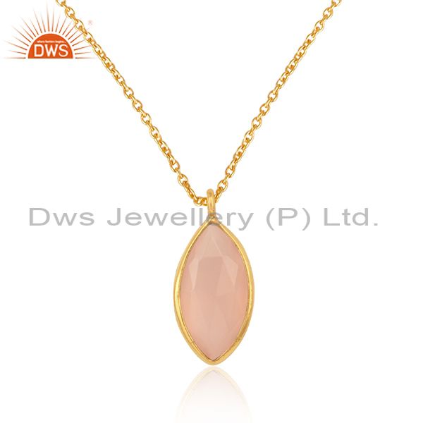 Rose Chalcedony Pendant With Gold Plated Silver Chain