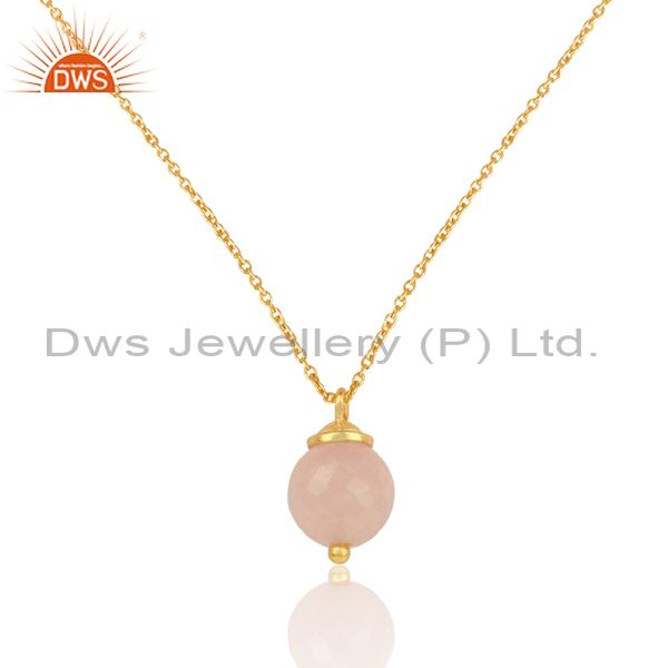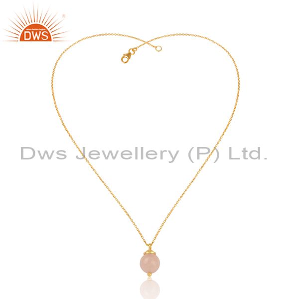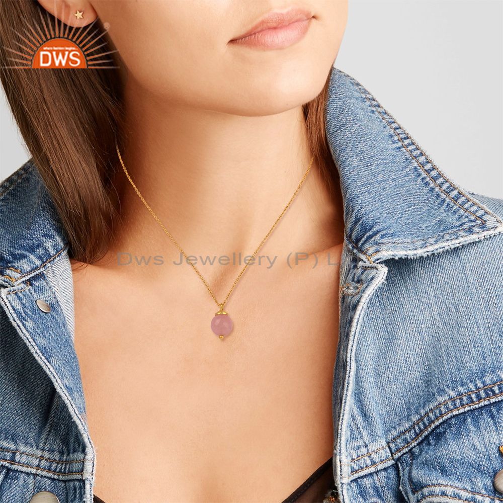 Rose Chalcedony Set Pendant And Gold On 925 Silver Necklace