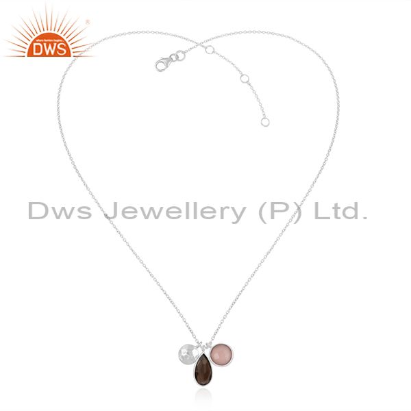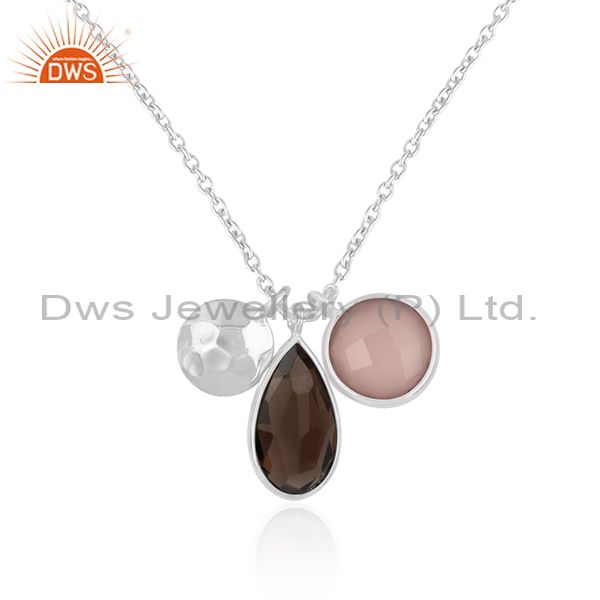 Rose Chalcedony Smoky Quartz Gemstone Fine Silver Pendant Jewelry