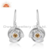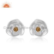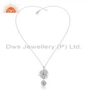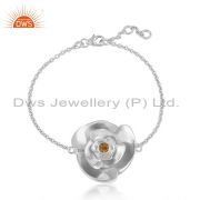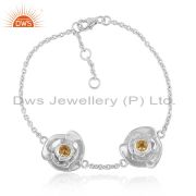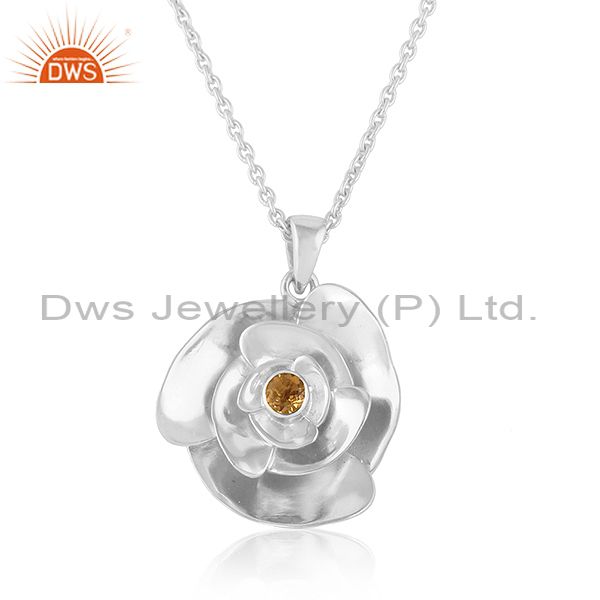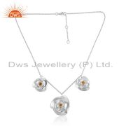Rose Design 925 Fine Silver Citrine Gemstone Chain Pendant Necklace