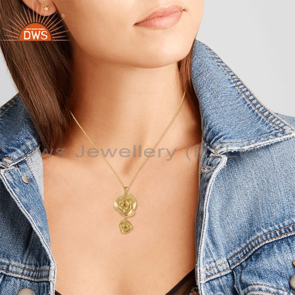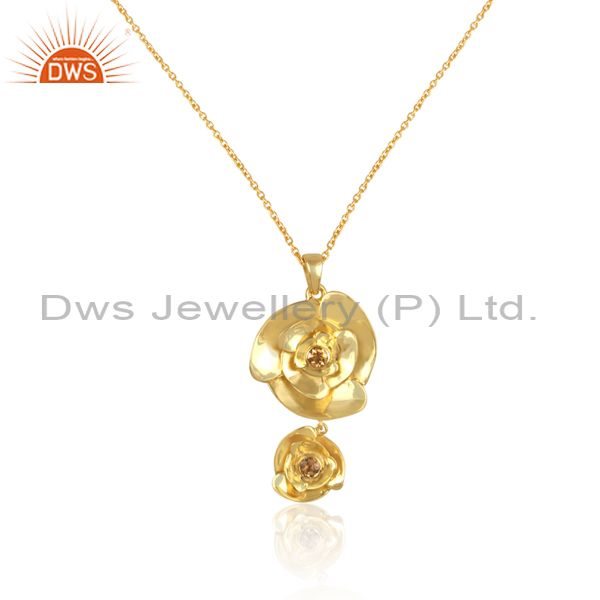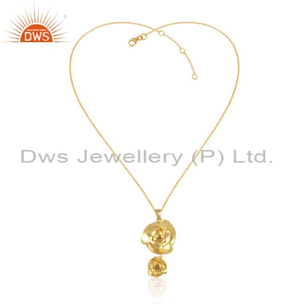 Rose Flower Design Gold Plated Silver Citrine Gemstone Necklaces
