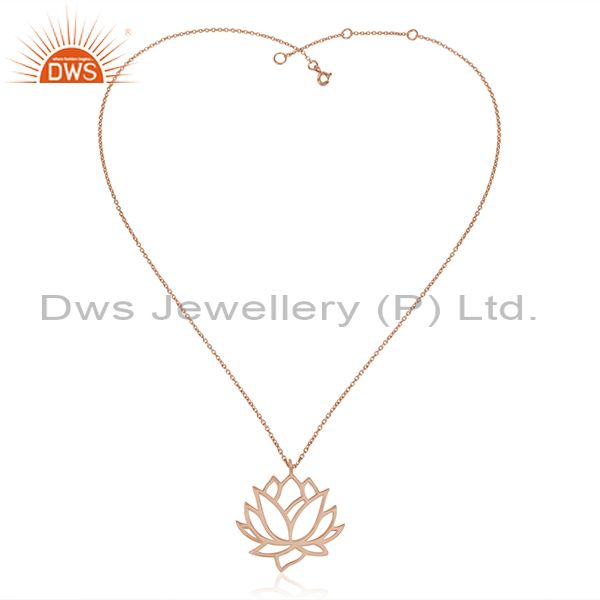 Rose Gold Plated 925 Sterling Silver Lotus Design Chain Pendant Manufacturer