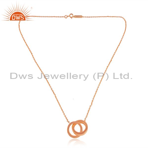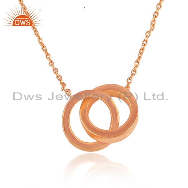 Rose Gold Plated Connected Circle Design Plain Silver Chain Pendant