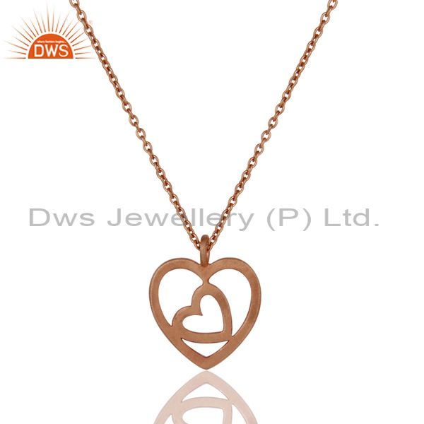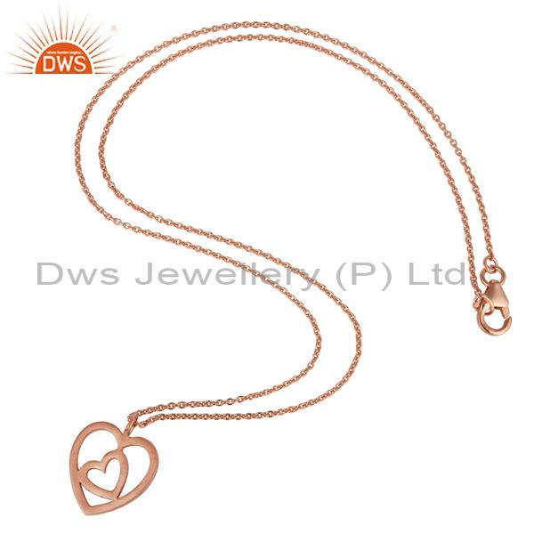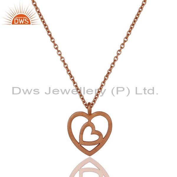 Rose Gold Plated Double Heart Sterling Silver Pendant Necklace With Chain