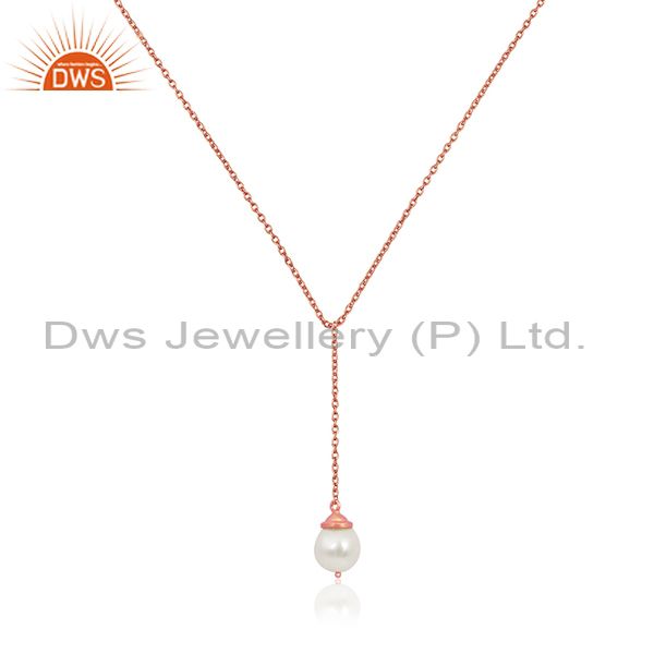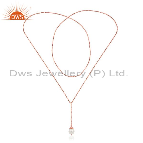 Rose Gold Plated Sterling Silver Natural Pearl 24Inch Chain Necklace Pendant