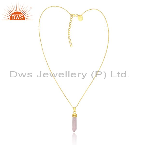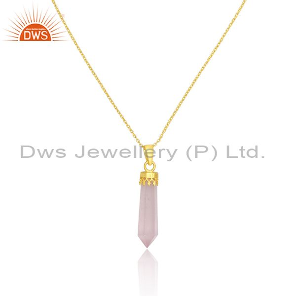 Rose Quartz Set Gold On 925 Silver Capsule Pendant And Chain