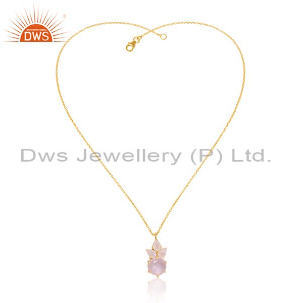 Rose Quartz Set Round Pendant And Gold On 925 Sterling Chain