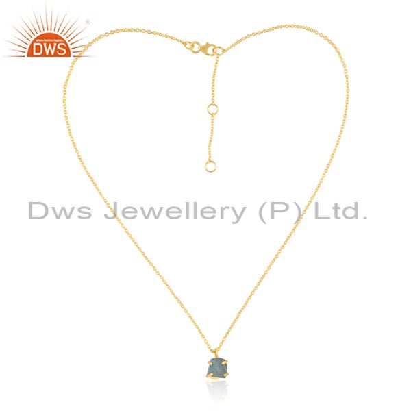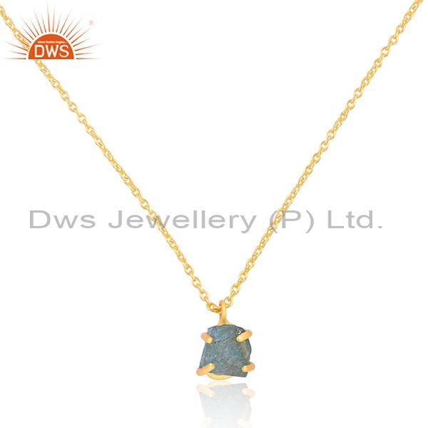 Rough Cut Apatite Pendant 18K Gold On Brass Classic Necklace