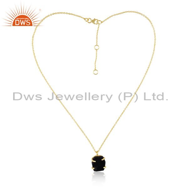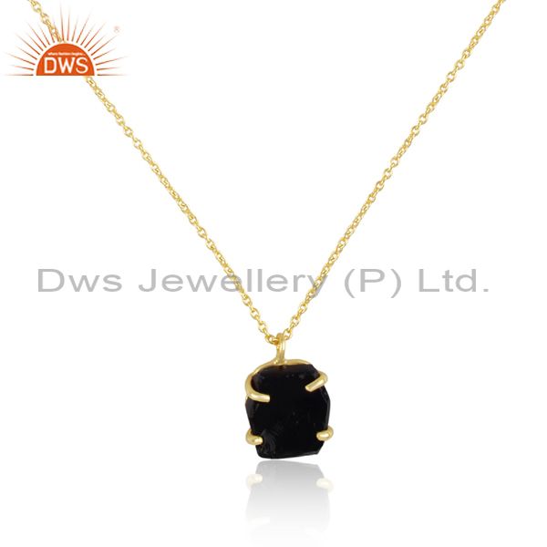 Rough Cut Black Obsidian Gold On Silver Pendant And Chain