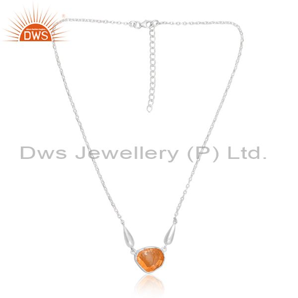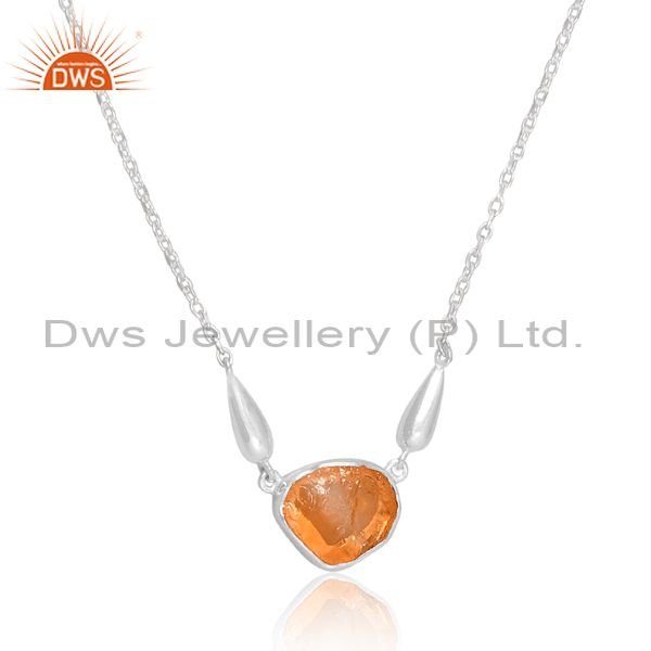 Rough Cut Citrine Set Fine Sterling Silver Pendant And Chain