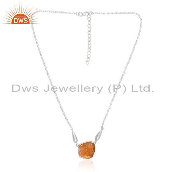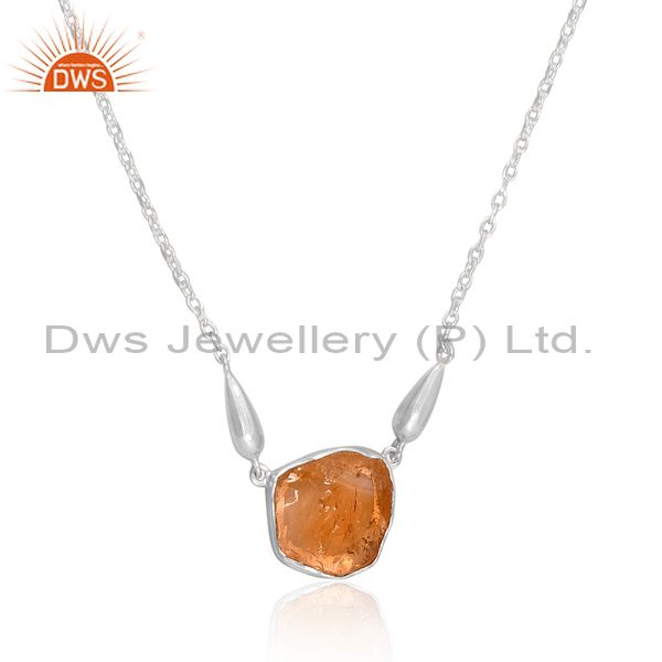 Rough Cut Citrine Set Pendant And Fine Sterling Silver Chain
