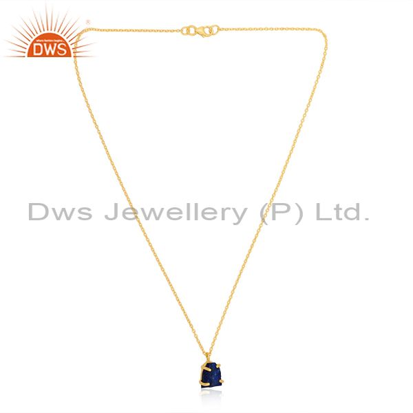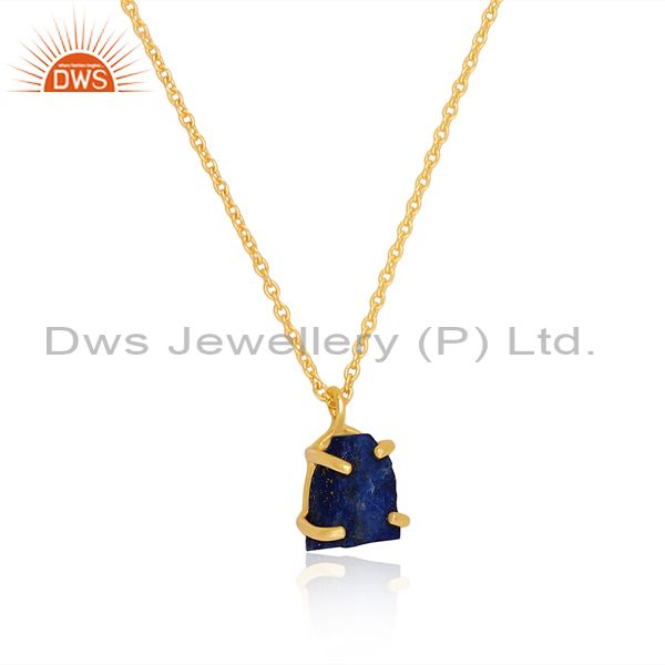 Rough Cut Lapis Set Gold On 925 Silver Pendant And Chain