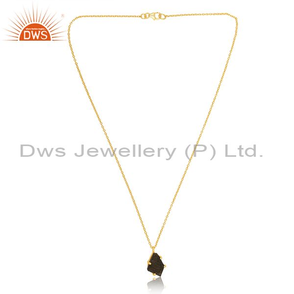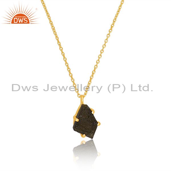 Rough Cut Moldavite Set Pendant And 18K Gold On Silver Chain