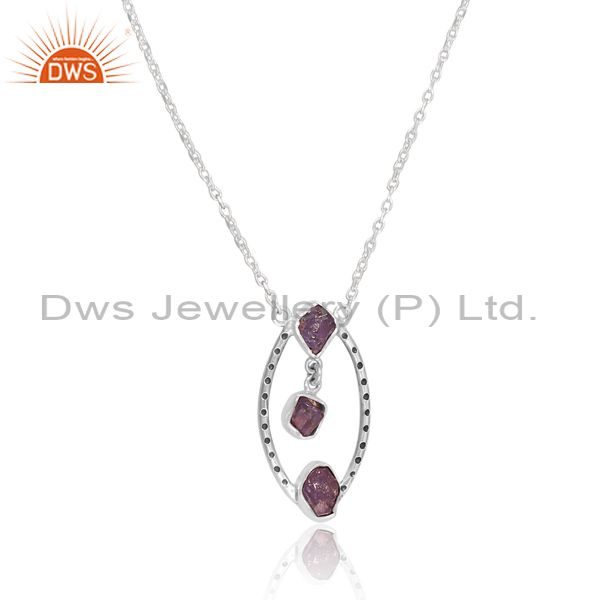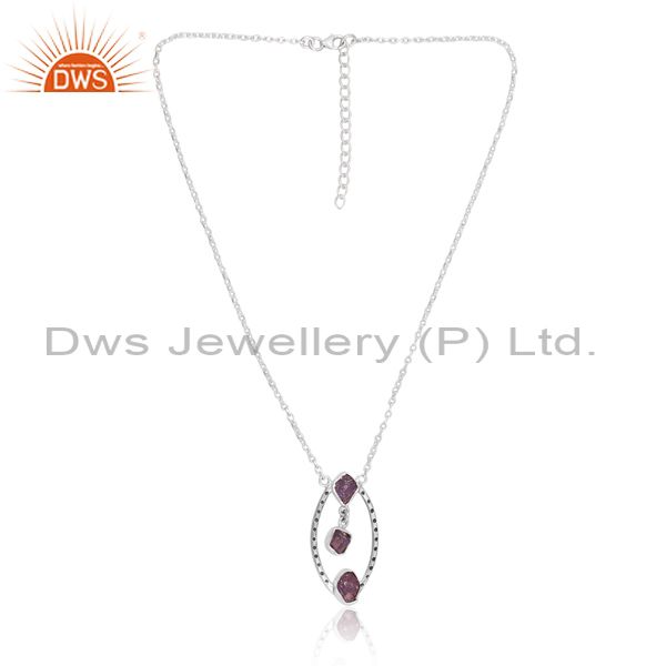 Rough Cut Tanzanite Set Oxidized Silver Pendant And Chain