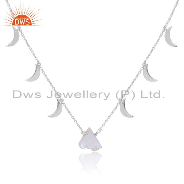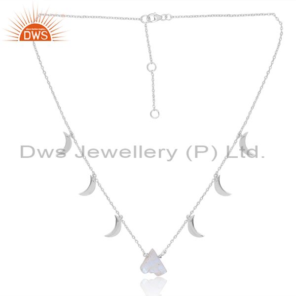 Rough Rainbow Moonstone Sterling Silver Pendant & Necklace