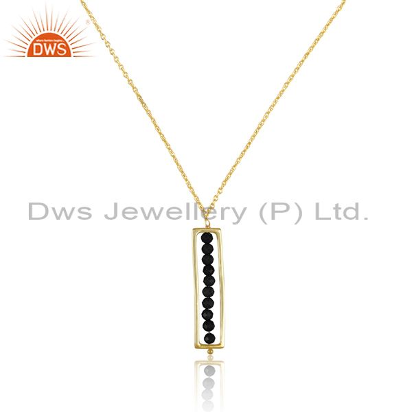 Round Black Onyx Set 18K Gold On Silver Pendant And Chain
